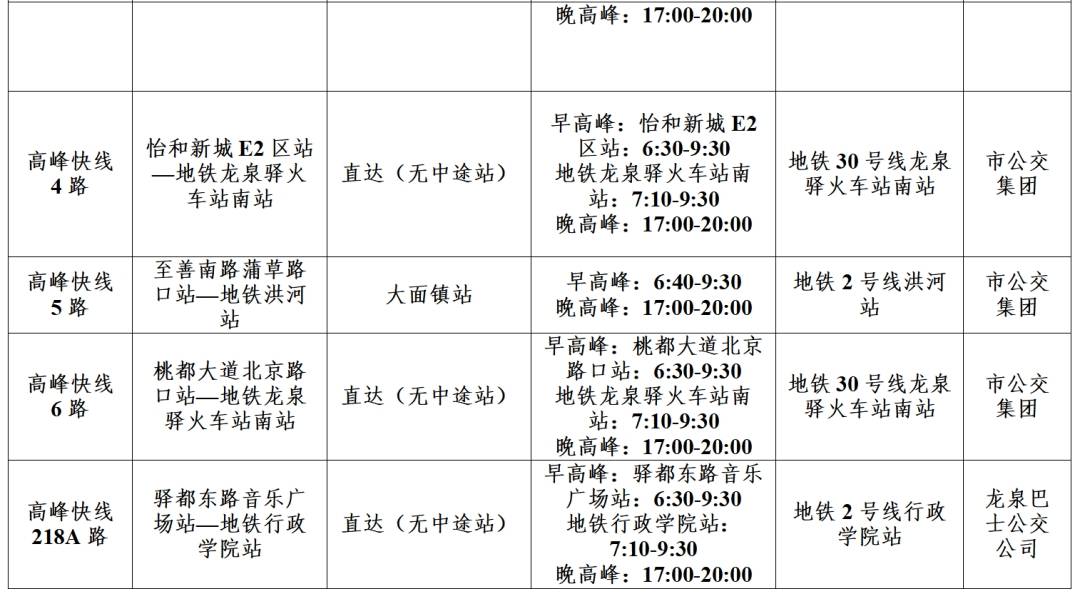 目前,每个停运地铁站周边区域均开行了多条公交快线接驳至运营地铁站,龙泉驿片区市民可选择就近乘车。成都公交后续将持续密切关注客流出行特征,结合实际需求动态调整线路发车频次、线路走向、停靠站点等。