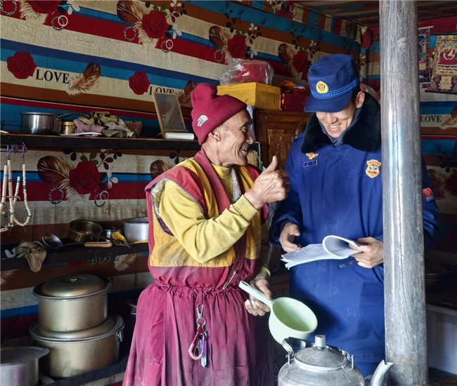 围绕牧区群众生产生活实际,指战员走村入户开展“一对一”宣传,重点提醒规范使用取暖设备、及时清理易燃杂物,引导群众将消防安全意识融入日常生活细节。